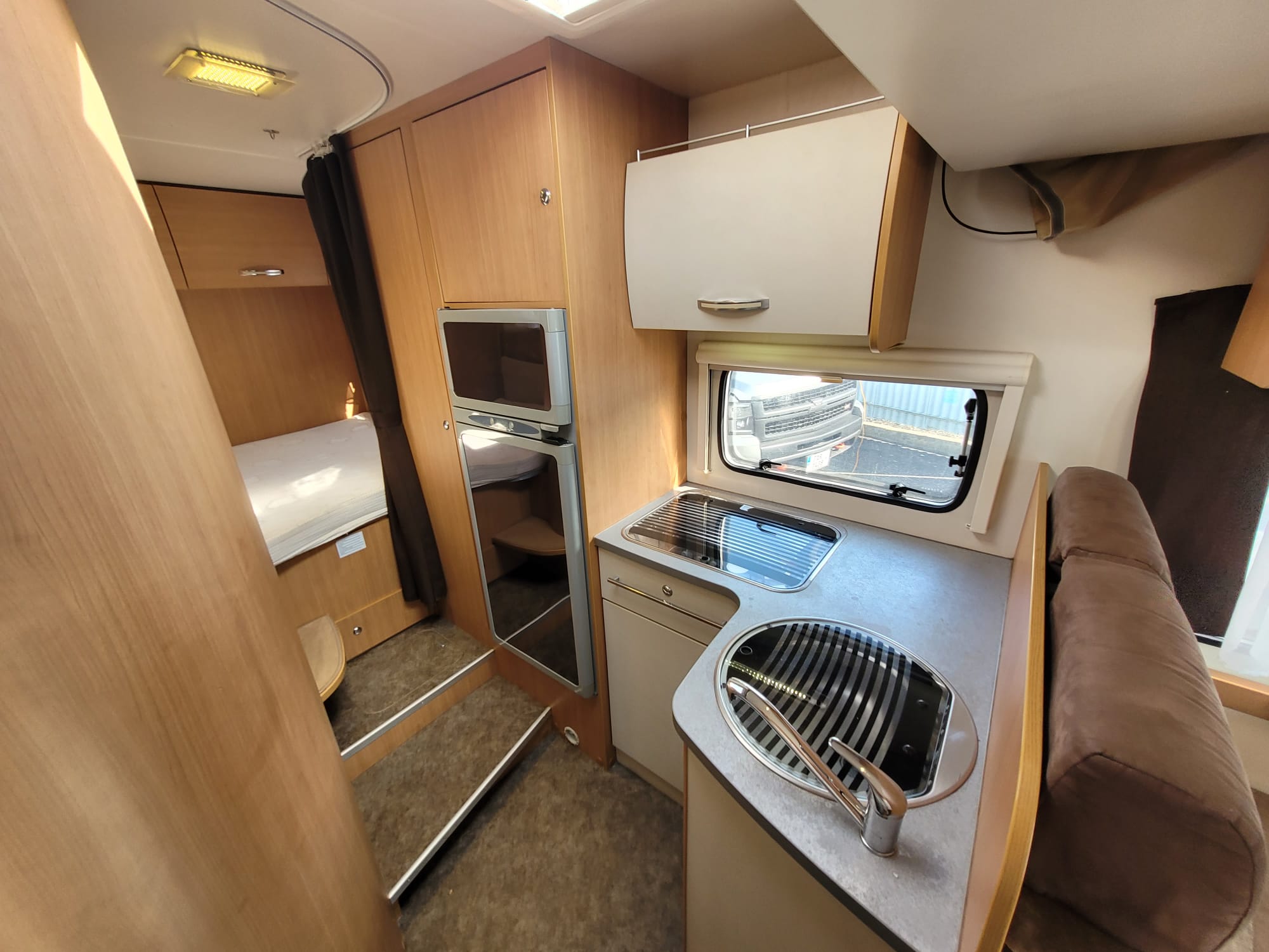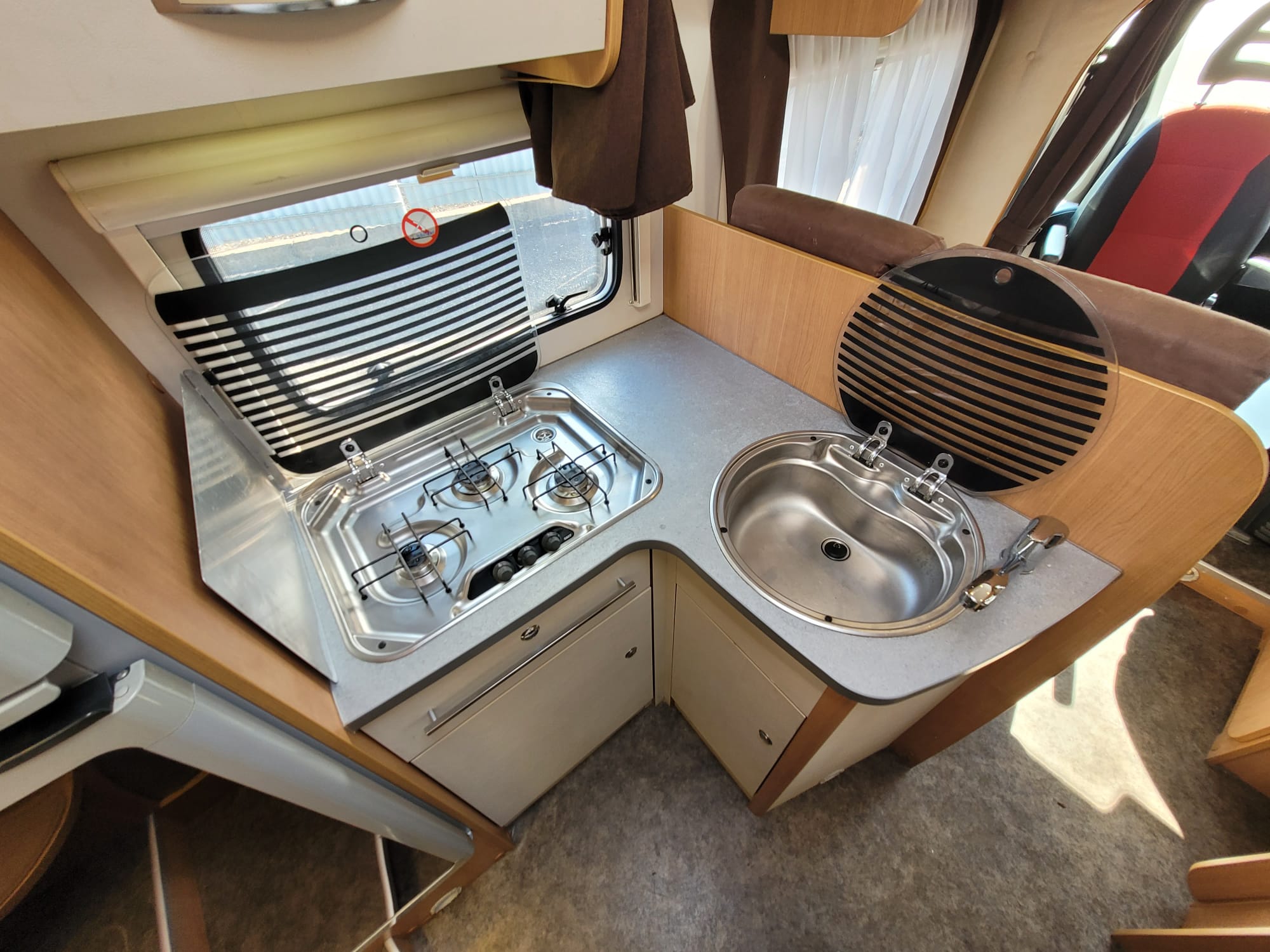 Obytný automobil pro 5 osob na jízdu i spánek. Možnost celoročního využití, vyhřívaná nádrž na čerstvou vodu+všechny rozvody. Markýza, motorová klimatizace, rádio, v zadní části garáž, nad ní je posuvné 2lůžko, v přední části spouštěcí dvoulůžko,rozkládací sezení na lůžko, koupelna se sprchou a chemickou toaletou, plynový ohřev vody, naftové topení, trojkombinační lednice, plynový vařič. Délka 6999, š 2300, v 2890, provozní hmotnost 3047Kg, celková 3500Kg, doložnost 453Kg, Tažné zařízení na 2000Kg. Váš stávající obytný vůz, nebo karavan je možné dát formou protiúčtu. Možnost financování.