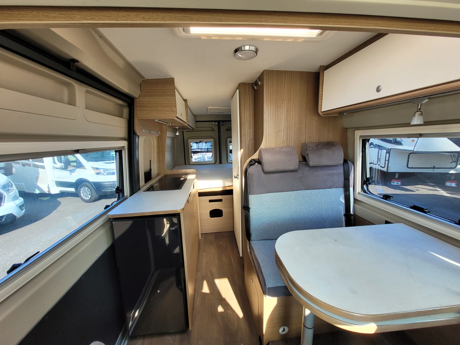 Obytný automobil pro 4 osoby na jízdu 2 na spaní (možnost dodání kabinového lůžka pro 3tí osobu). Možnost celoročního využití, vyhřívaná nádrž na čerstvou vodu+všechny rozvody. Markýza, nosič na kola, motorová klimatizace, rádio s navigací, parkovací kamera, solární panel+trakční baterie zajišťují soběstačnost vozu. V zadní části úložný prostor, nad ním 2 lůžko, koupelna s chemickou toaletou a sprchou, plynové topení+ohřev vody, kompresorová lednice, plynový vařič. Délka 5998, š 2090, v 2650, provozní hmotnost 2718Kg, celková 3500Kg, doložnost 782Kg. Možnost montáže Tažného zařízení na 2500Kg. Váš stávající obytný vůz, nebo karavan je možné dát formou protiúčtu. Možnost financování.