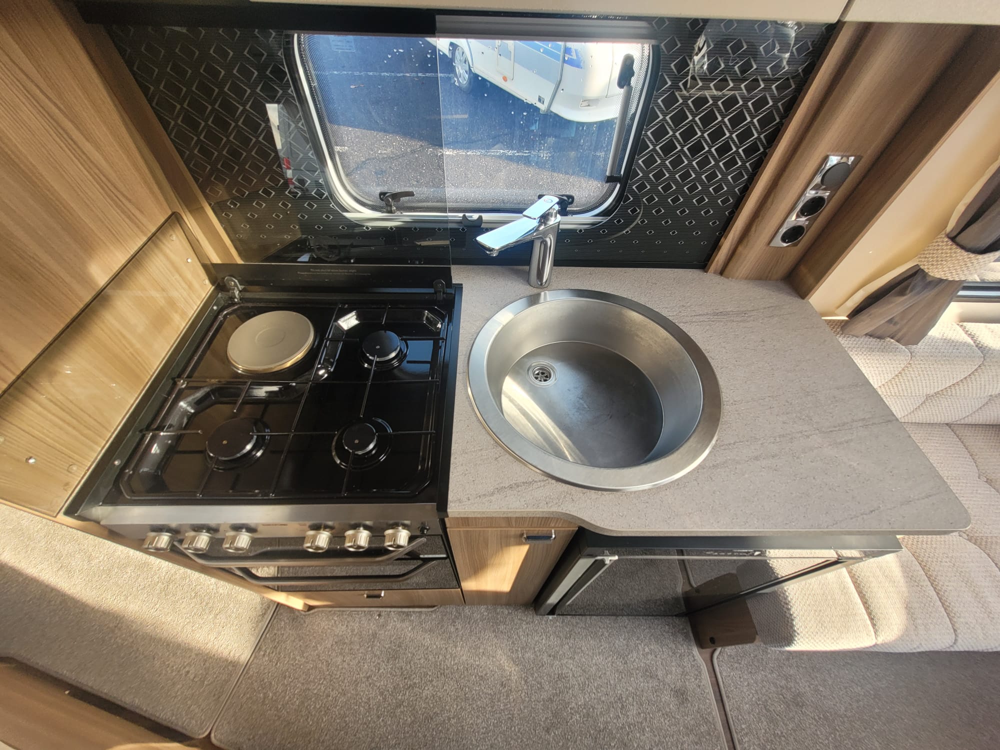 Karavan pro 2-4 osoby. Markýza, nosič na kola, ATC-automatická stabilizace podvozku, soběstačný-solární panel+trakční gelová baterie, mover-pojezd na dálkové ovládání, Plynové topení+ohřev vody, duocontrol na připojení 2ks lahví, nádrž na čerstvou vodu, trojkombinační lednice, plynový vařič, plynová trouba, mikrovlnná trouba, dvojitá okna s roletou a sítí, koupelna se sprchovým koutem a chemickou toaletou, rádio. Délka s ojí 7310, š 2250, v 2610, provozní hmotnost 1380Kg, celková 1600Kg, doložnost 220Kg. Možnost montáže doplňků dle Vašeho přání.. Váš stávající obytný vůz, nebo karavan je možné dát formou protiúčtu. Možnost financování.