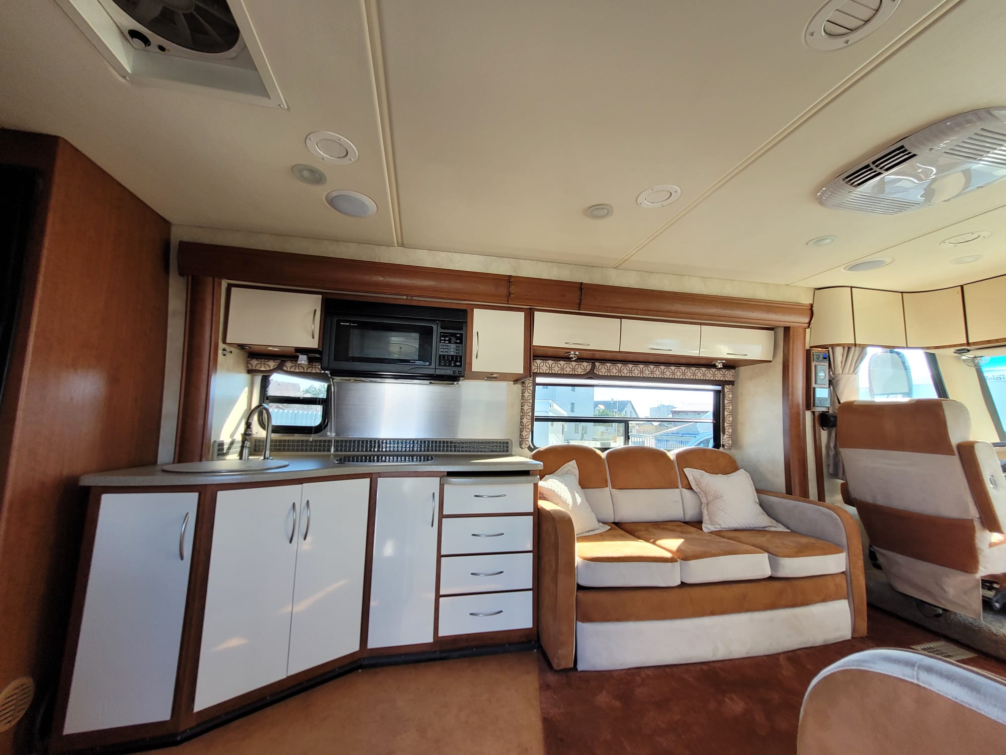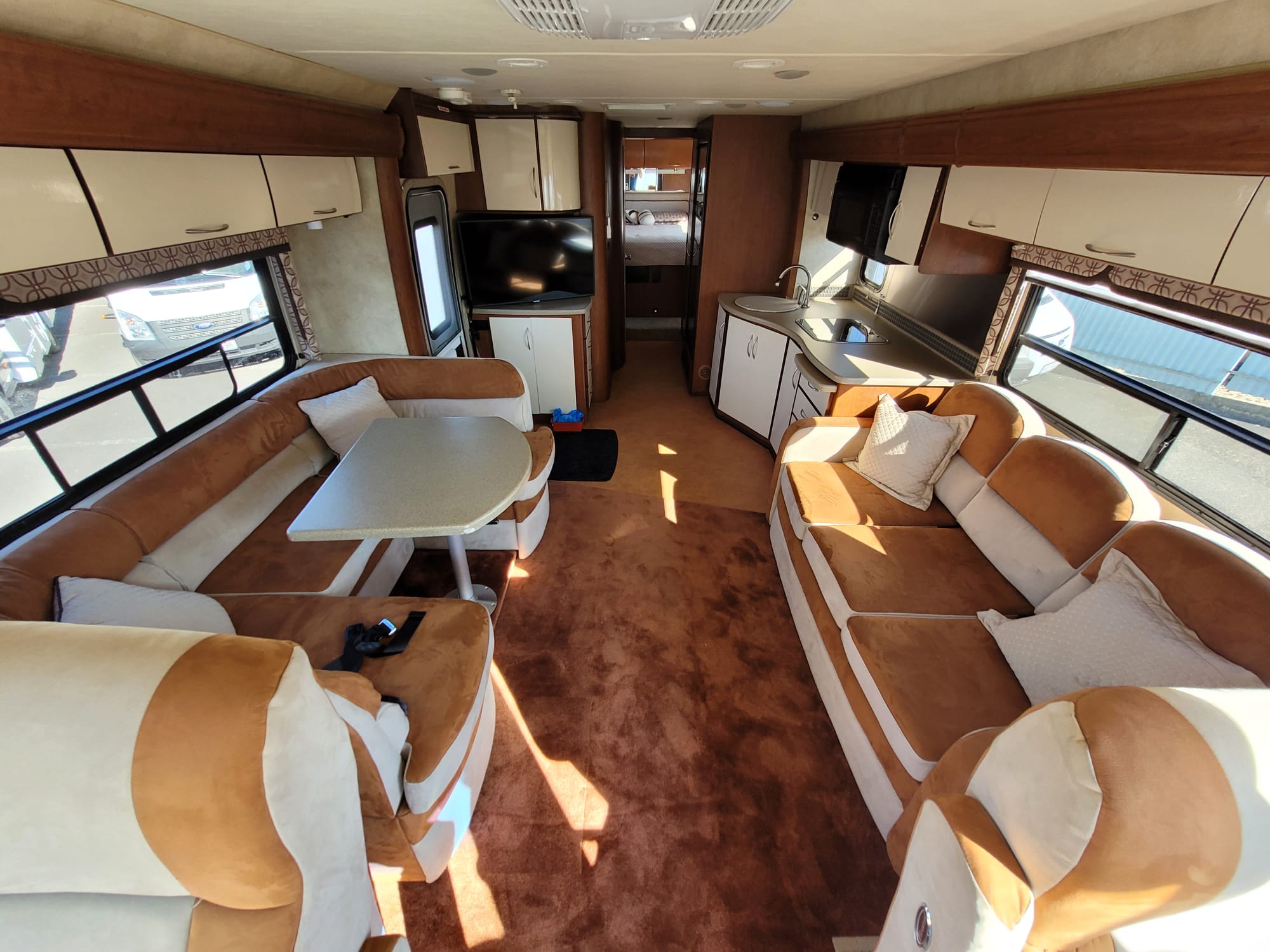 Americký obytný automobil pro 8 osoby na jízdu a 7 na spánek. Zimní paket-možnost celoročního využití,vyhřívané nádrže na čerstvou i odpadní vodu. Markýza,