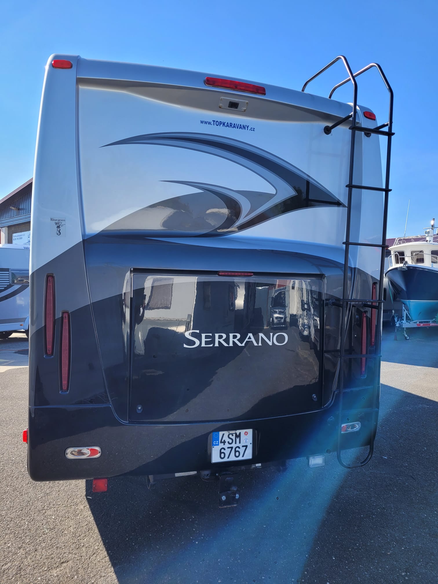 spotřebičů, plně soběstačný vůz, booster pro nabíjení od motoru, rádio, parkovací kamera, v zadní části královské lůžko, v přední části rozkládací gauč, sezení a kabinové lůžko, samostatná sprcha, koupelna s